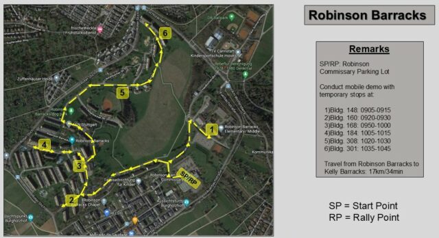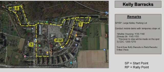 Kelley Barracks: 11:25 a.m. to 12:10 p.m.