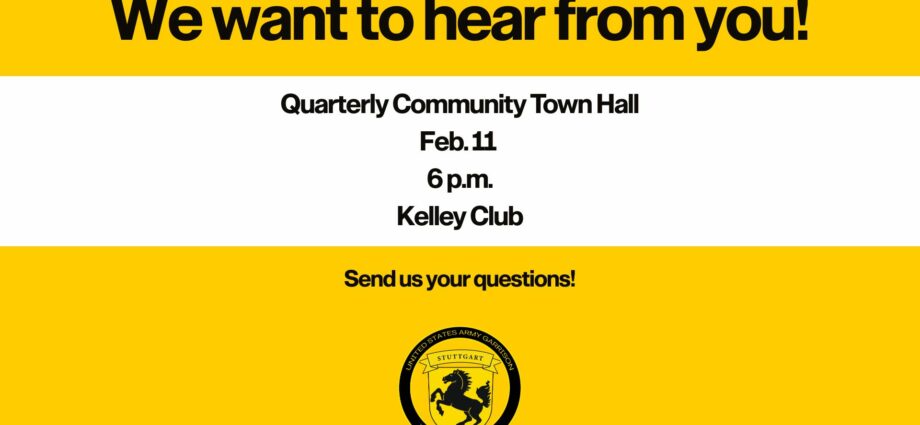 Representatives from USAG Stuttgart will be at the Kelley Club on Kelley Barracks on Feb. 11 at 6 p.m. for an open community discussion. Please submit your questions by Jan. 29. Read More