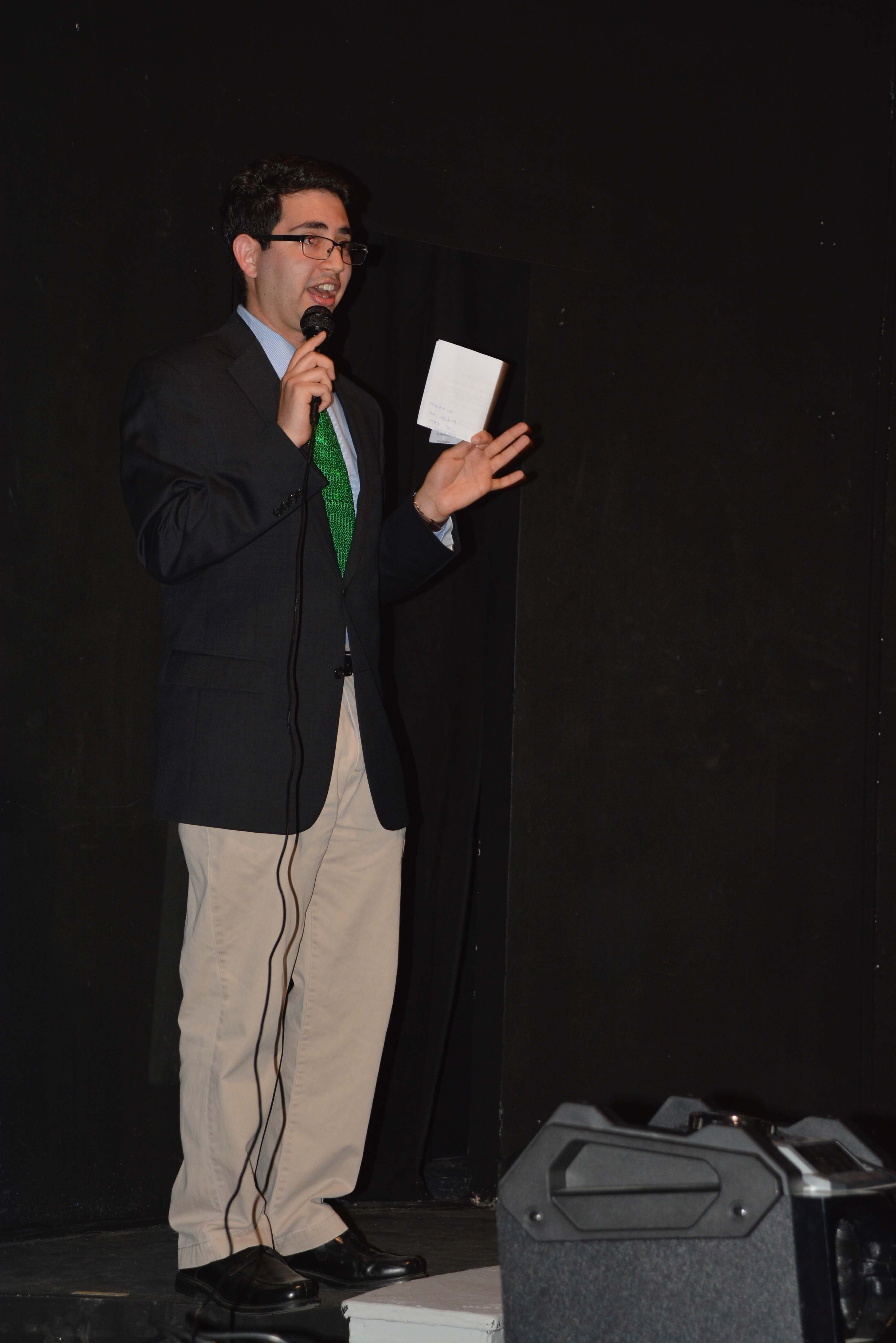 Emcee Bardia Khajenoori, resplendent in a spangled green tie, provided encouraging and amusing commentary throughout the program, to include smoothing over minor technical glitches with the sound system and giving credit to the folks behind the scenes who made the show possible.