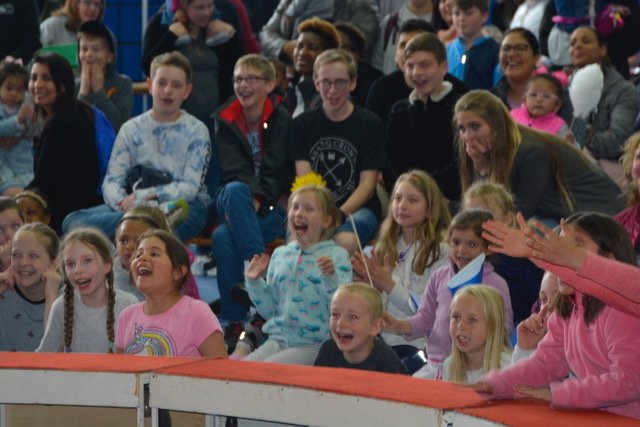 As showtime approached, children gathered in the seats and clapped along to circus music in anticipation.