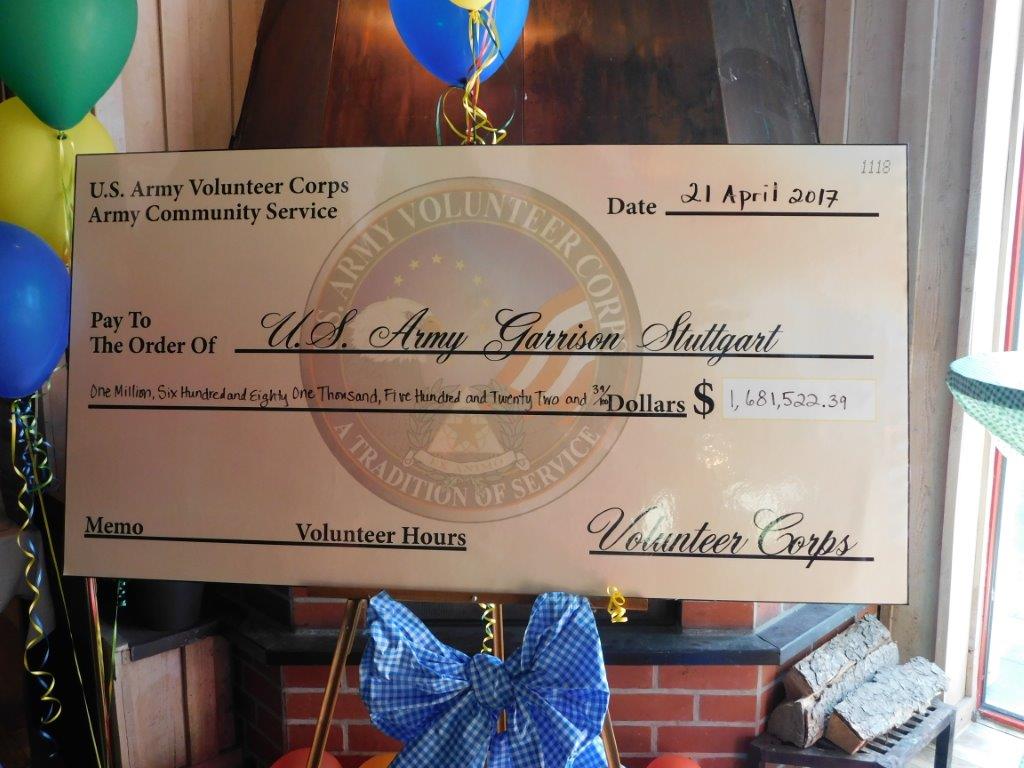 Members of the U.S. Army Garrison Stuttgart military community volunteered the equivalent of $1,681,522.34 of their personal time to various Stuttgart community events, programs and services in 2016.