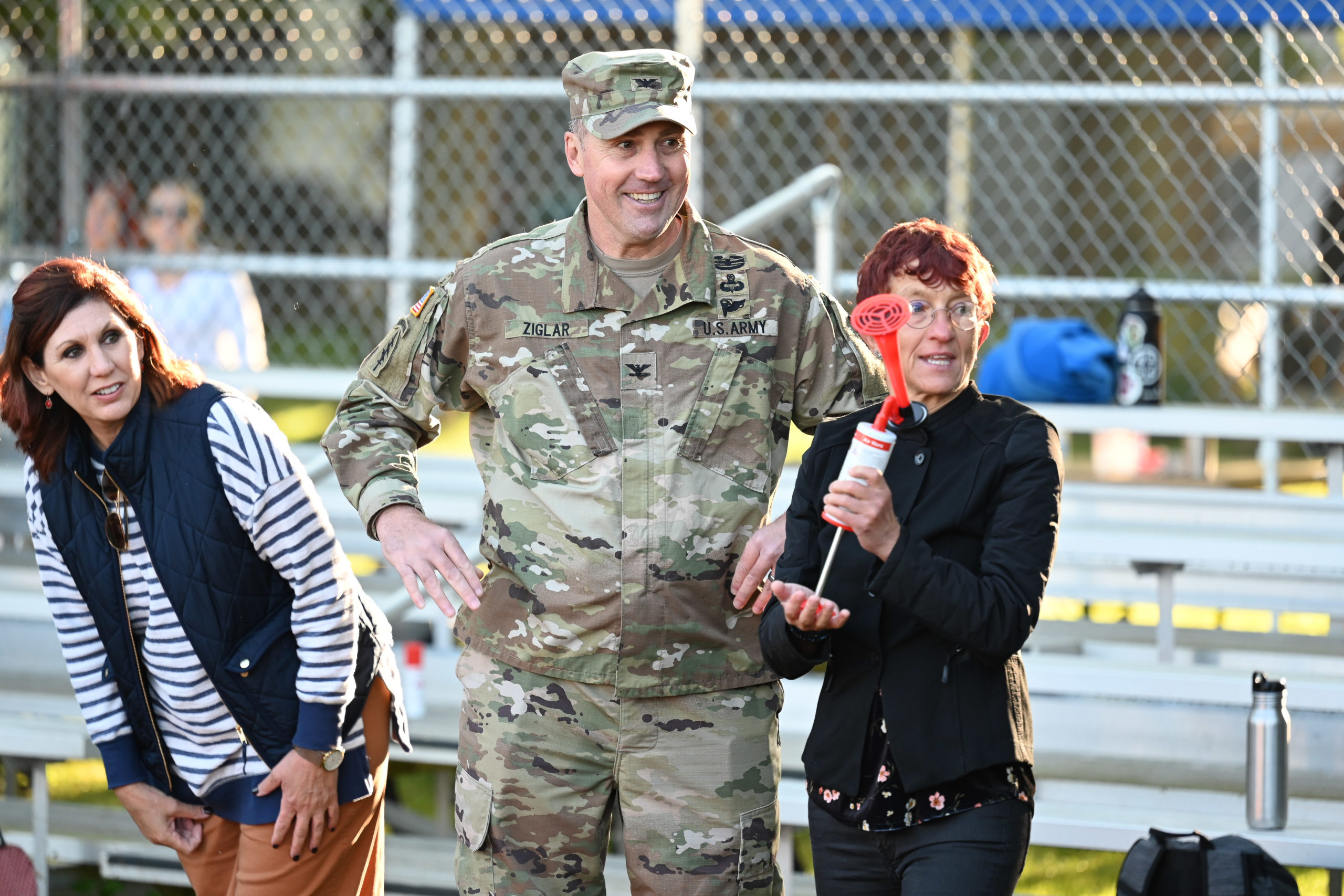 The District Mayor of Plieningen, Andrea Lindel, blew an air horn signifying the start of the 11th Annual AFRICOM Olympics, Thurs, Sep 2, on Kelley Barracks.