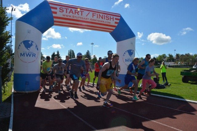 An hour before the race, U.S. Army Garrison Family & Morale, Welfare and Recreation team members had everything prepared for the roughly 135 runners, including two Soldiers from the 554th Military Police Company on quads to lead and follow the runners, two water points manned by American Red Cross volunteers for hydration and a medic for safety. A large countdown clock ticked off the seconds before the start.