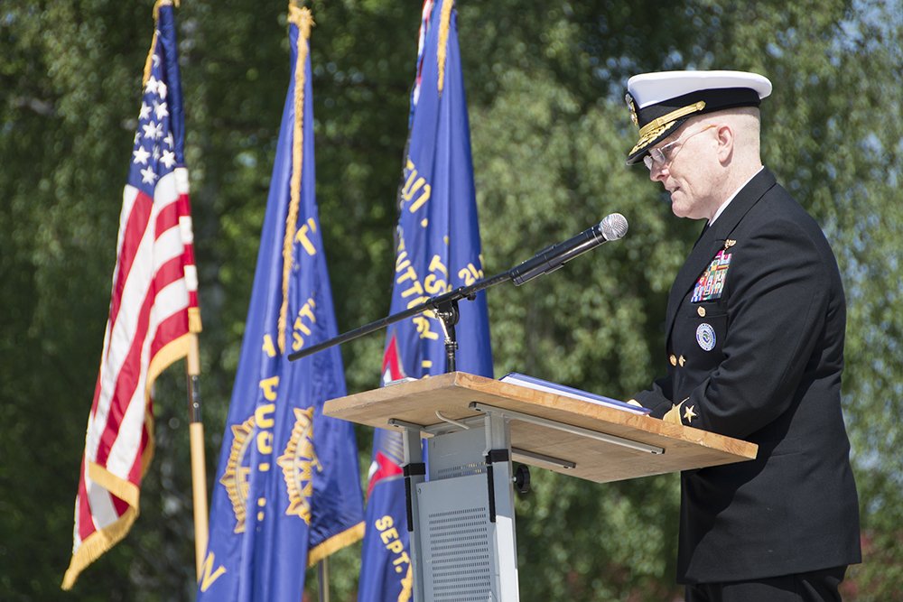 Rear Adm. Frank D. Whitworth, U.S. Africa Command Director of Intelligence (J2), was the guest speaker at the U.S. Army Garrison Stuttgart, Germany – USAG Stuttgart Memorial Day Ceremony. – Photo by Kevin S. Abel