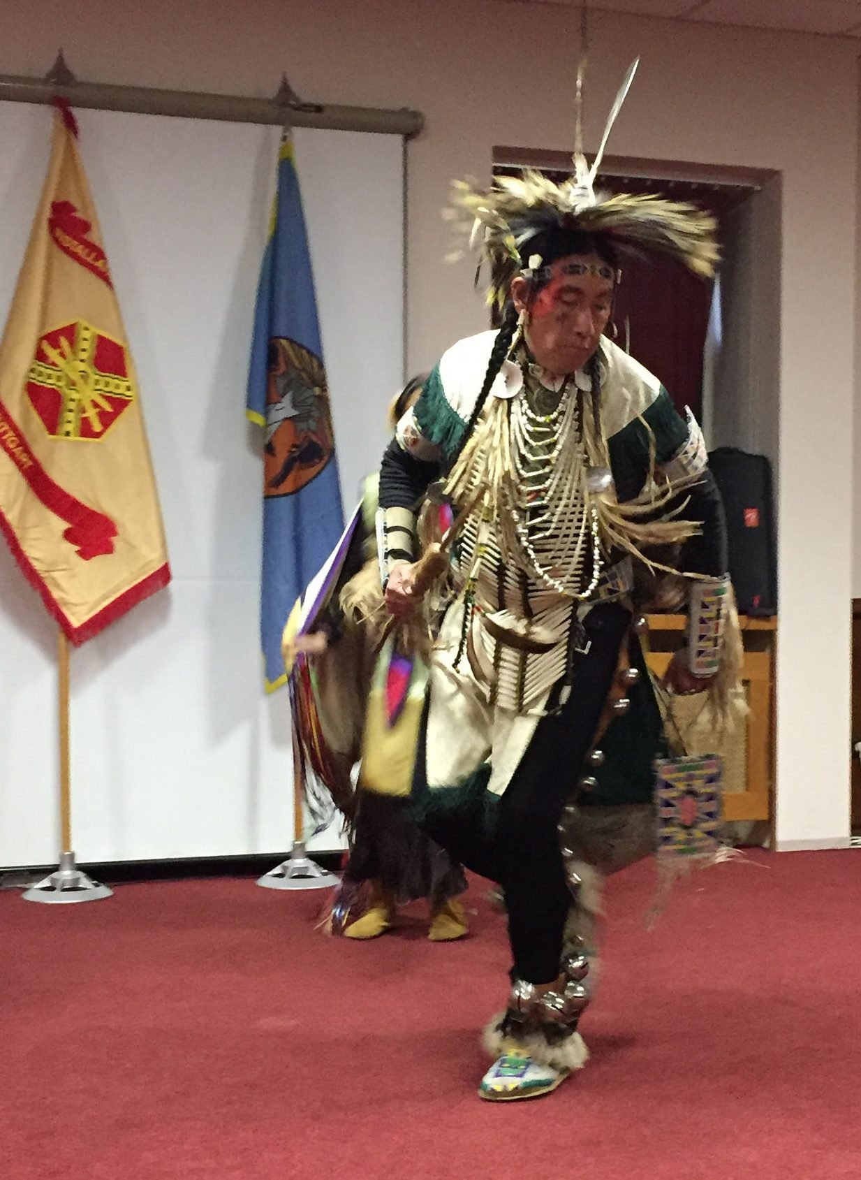 Old Elk spoke to the history of his tribe and performed at both ceremonies, accompanied by his wife and daughter. He also gave attendees insight on the meaning behind details of his Native American regalia, from each feather earned in battle, to teeth and bones.
