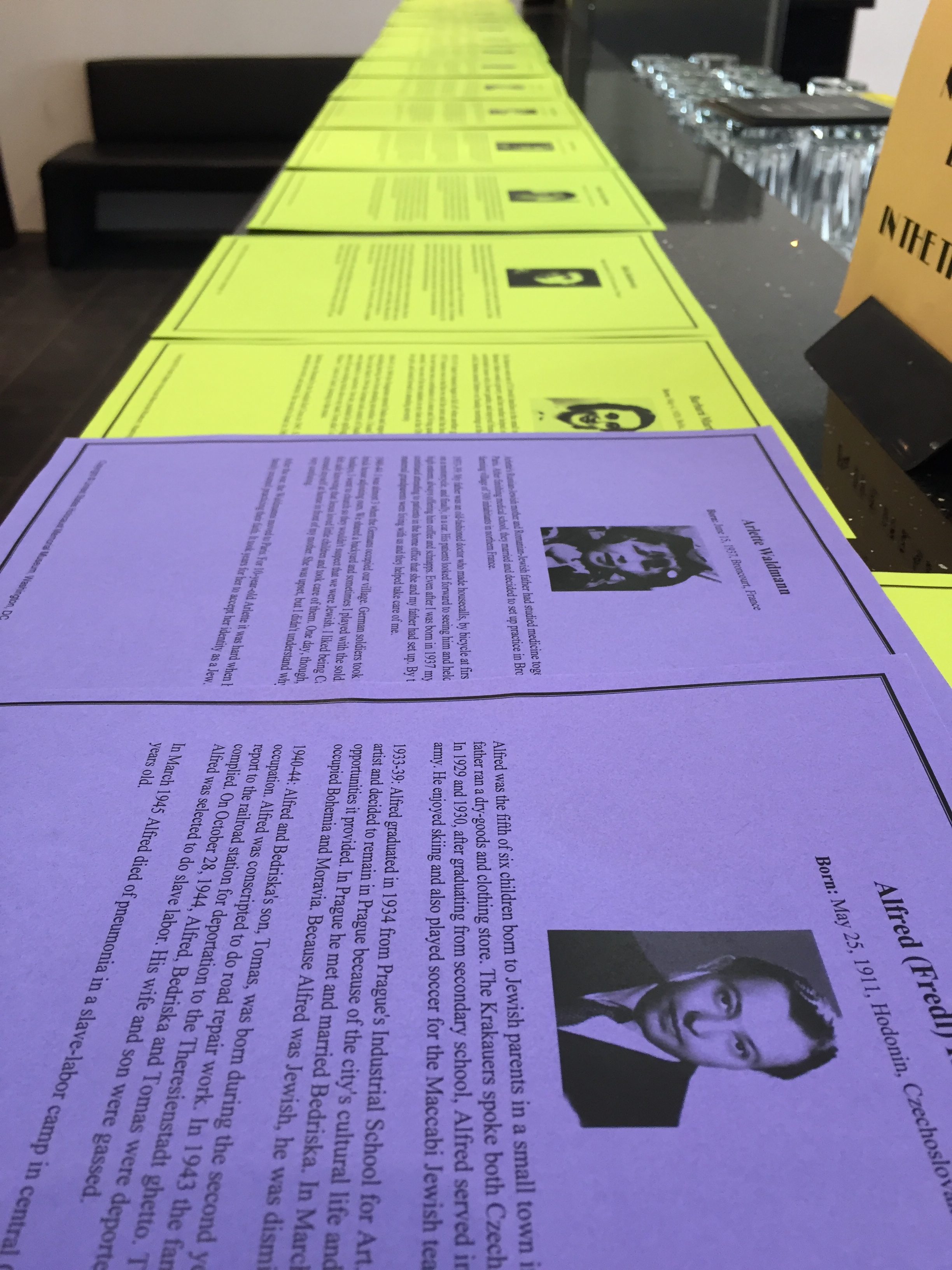 Profiles of individuals who lost their lives in the various concentration camps during World War ll were placed on tabletops in the theater for attendees to read and contemplate the sacrifices, tragedies and death that thousands of Holocaust victims faced.