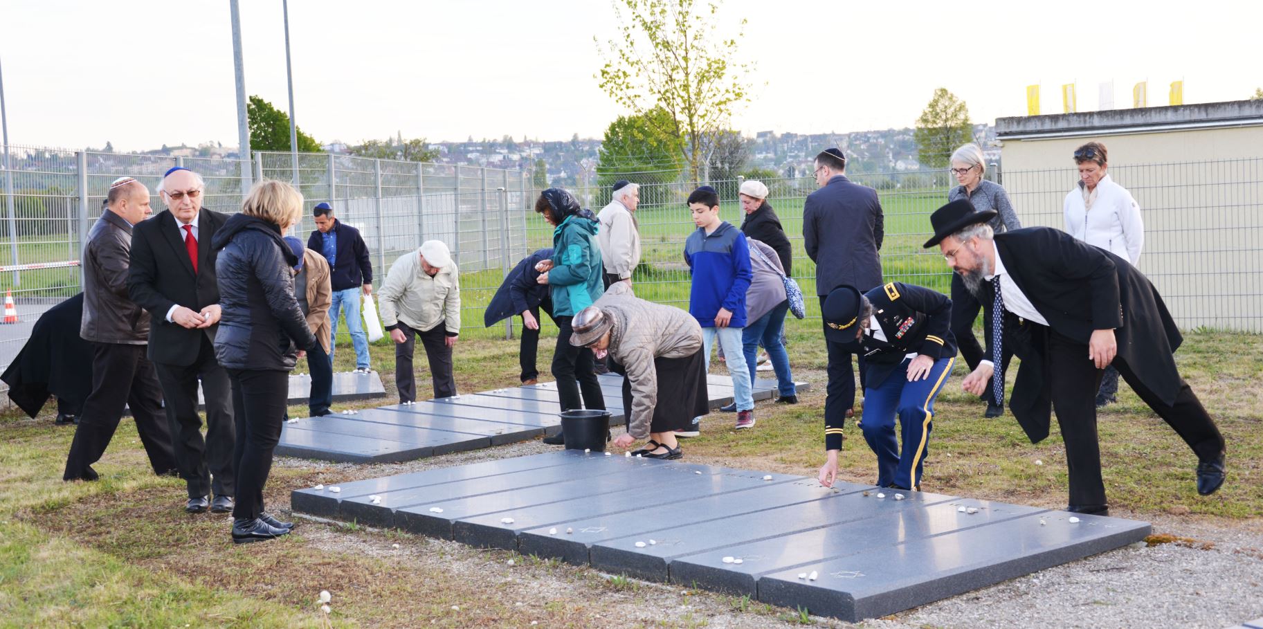 During the memorial service, Chief Wuerttemberg Rabbi, Netanel Wurmser, recited the Kaddish (prayer for the departed) and led the group in the “el male rachamin” (chant for the Shoah victims). Those in attendance were encouraged to place white stones on each of the 34 graves as a sign to others that someone has visited the graves. The stones are symbols of the lasting presence of the deceased’s life and memory.