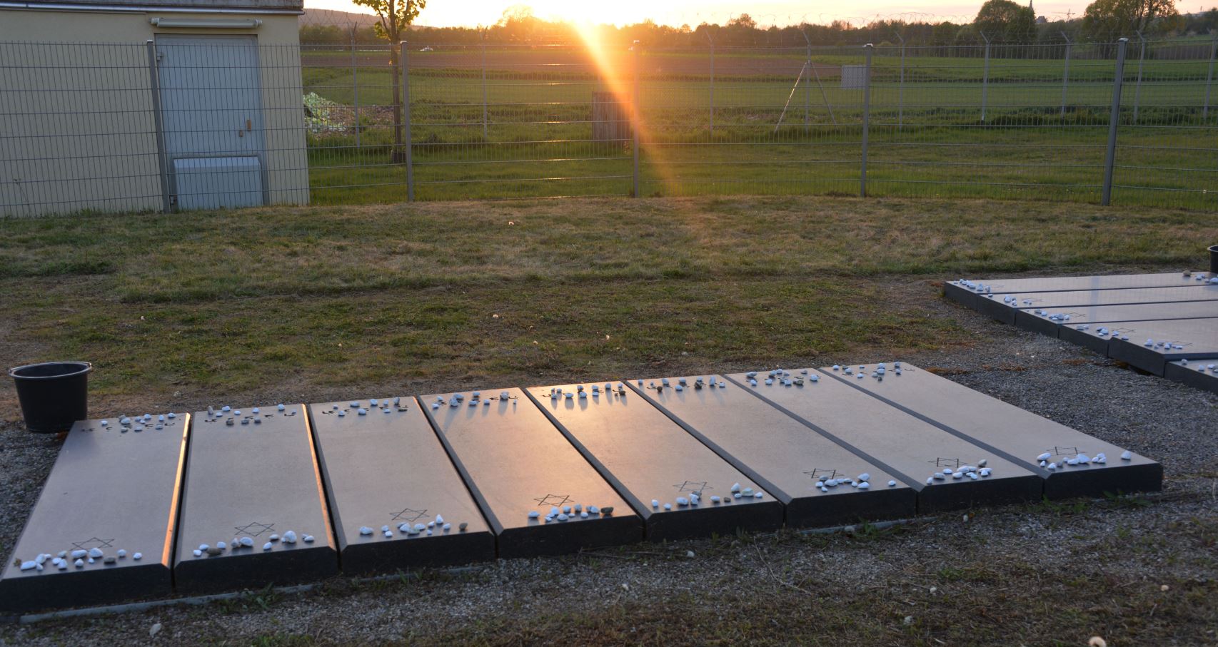 As the sun sets, it shines on the white rocks that adorn the graves at the Holocaust Memorial located at the main gate of the Stuttgart Army Airfield. Photo by Larry Reilly