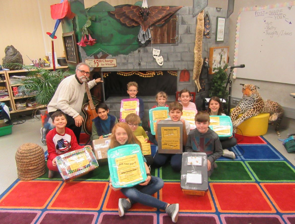 Fourth graders at Stuttgart Elementary School investigated the possibility of time travel last week in class by testing Einstein’s theory of relativity. In place of actually traveling through time in their own faster than the speed of light time machine, the students constructed their very own traveling time capsules to be opened on their 3oth birthday in the future. Each time traveler wrote letters to their 30 year old selves, and collected letters from their parents, grandparents, brothers and sisters, and best friends who also wrote to their future selves. Additional treasures were cataloged, and added to their time capsules. The students’ parents were instructed to store away their child’s time capsule for the next twenty years, into the future and beyond.