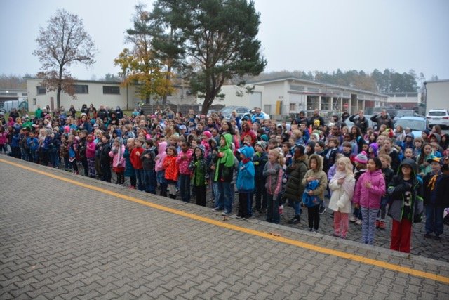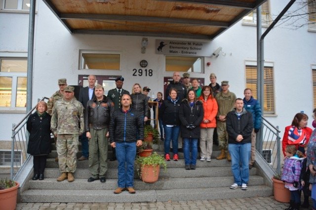 Hundreds of Patch Elementary School students formed up by grades on a chilly, gray morning on Panzer Kaserne to honor Stuttgart military community veterans, Nov. 7.