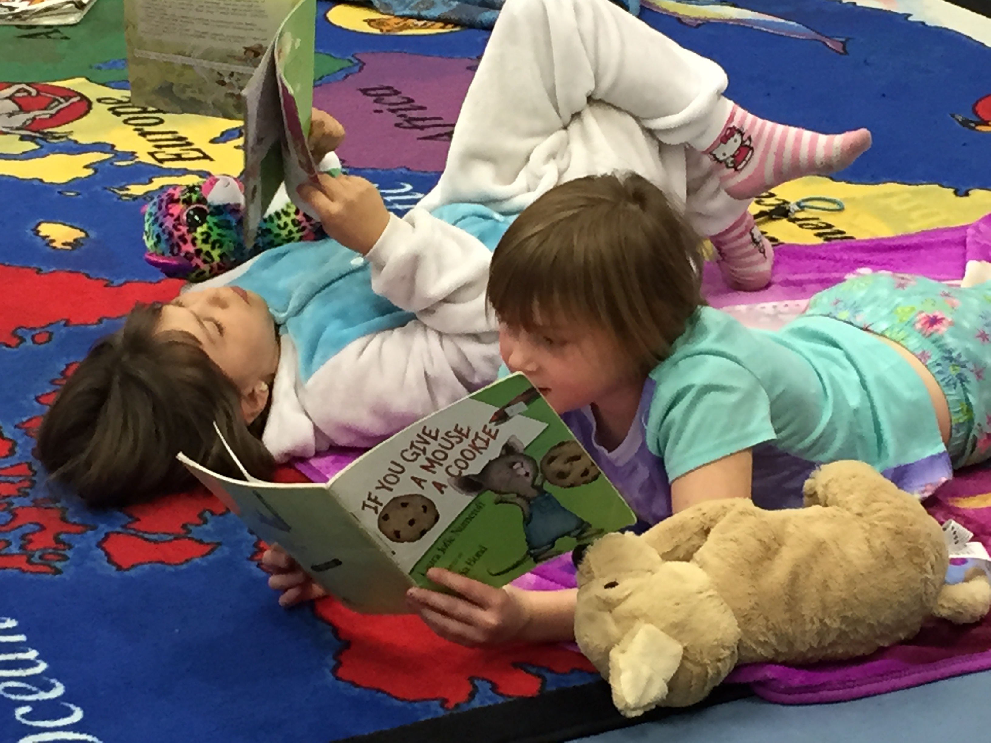 Students and faculty wore pajamas and spent time reading all over the building. To record their reading, each student had a map of the United States. Each state filled in is 15 minutes of recorded reading. The PTSA also sponsored a free book giveaway for K-5 students during the Read-In.