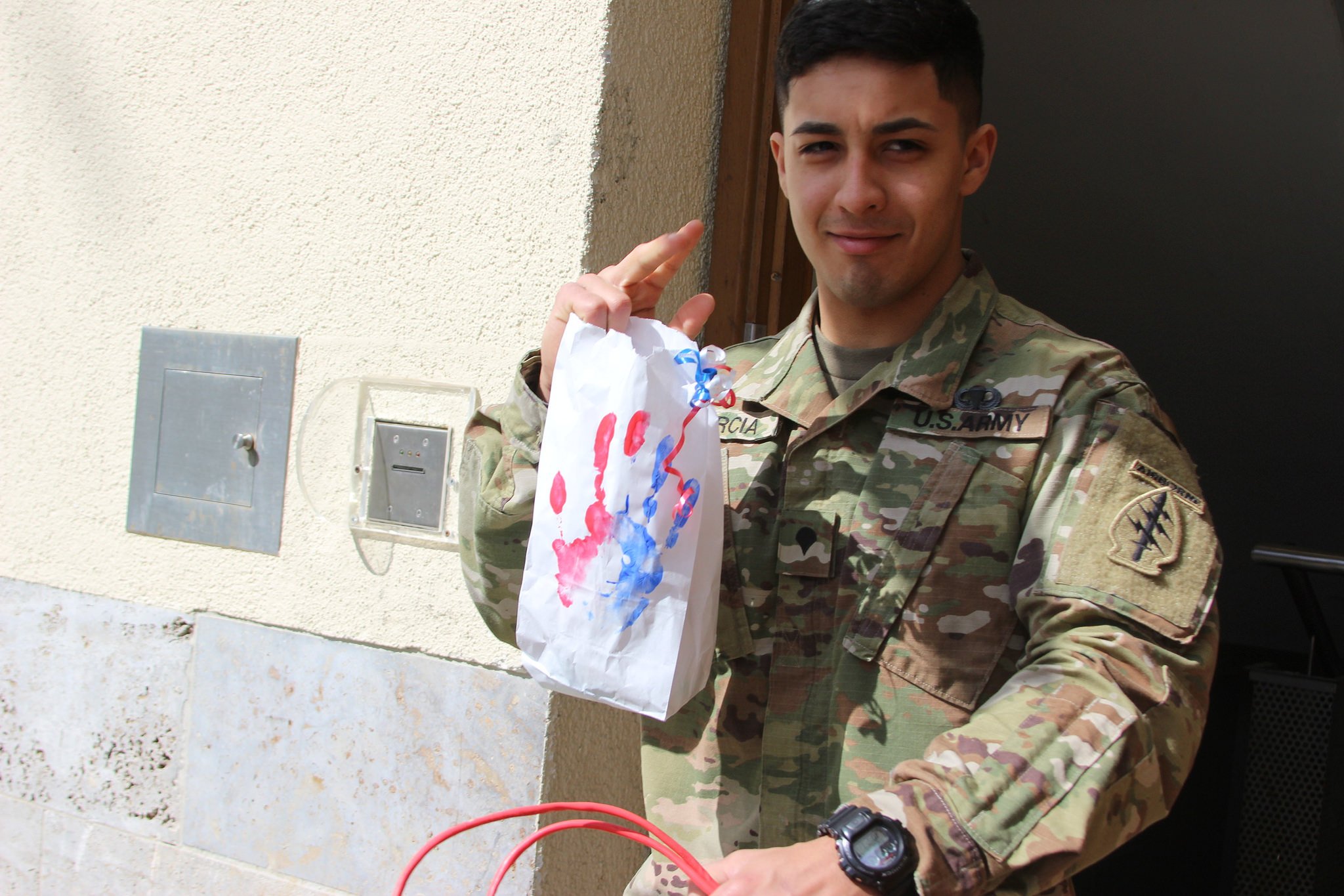 A life lived overseas, away from family and those who care about you, can leave one feeling alone. For two years, teacher, Shana Blankenship has coordinated a massive effort to provide single service members with a little love, attention, and appreciation. After taking donations and getting help from many Stuttgart High School students and teachers, Blankenship, Chef Huebner, Lisa Robinson, and Linda Santiago escorted a large group of students to the single Soldier dorms, where they left 150 “star-spangled” gift bags. German chocolate, homemade cookies from their culinary arts classes and other handmade treats, bottles of water, and an assortment of candies filled these tokens of acknowledgement.