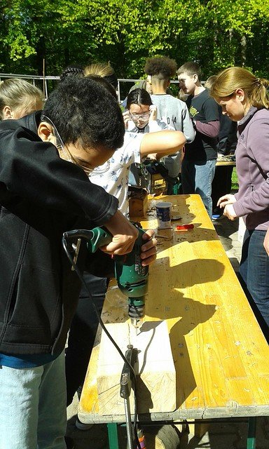 DPW brought in biological consultant specialists from Institut für Vegetationskunde und Landschaftsökologie (IVL), a German environmental company, focusing the first day on birds and bats, and the second day on insects. IVL works with the garrison regularly on conservation surveys, awareness efforts and endangered species management. After introducing several species and their habitats, students went on a guided bird walk, followed by hands-on experience. Teams of students and the experts built insect huts, and bird and bat houses that now hang outside the school for the next few weeks.