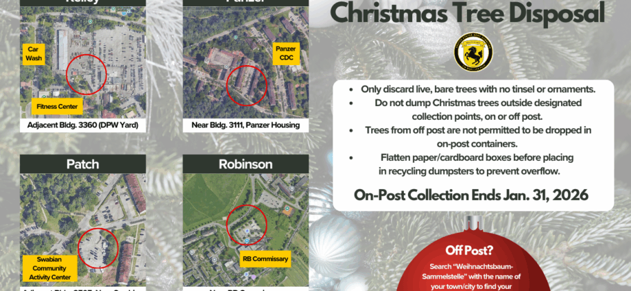 On-post residents may drop off used Christmas trees at designated locations on each residential installation through Jan. 31. Off-post residents must use off-post collection sites.Read More
